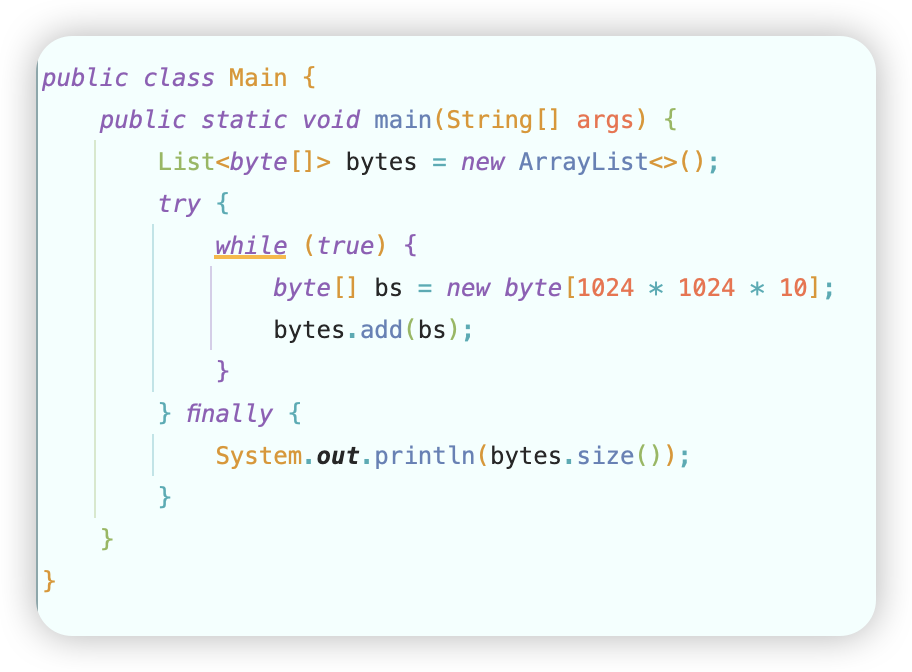 在上述代码中,我们通过一个死循环,持续不断地创建大小为10M的比特数组,最终生成的比特数组的总大小将会超出堆的最大可用空间,导致在堆中无法再存放新的比特数组,从而引发OutOfMemoryError错误。需要注意的是,在模拟代码中,我们一定要把新创建的比特数组添加到一个预定的集合当中,以防止它们被垃圾回收器当成”垃圾“回收。