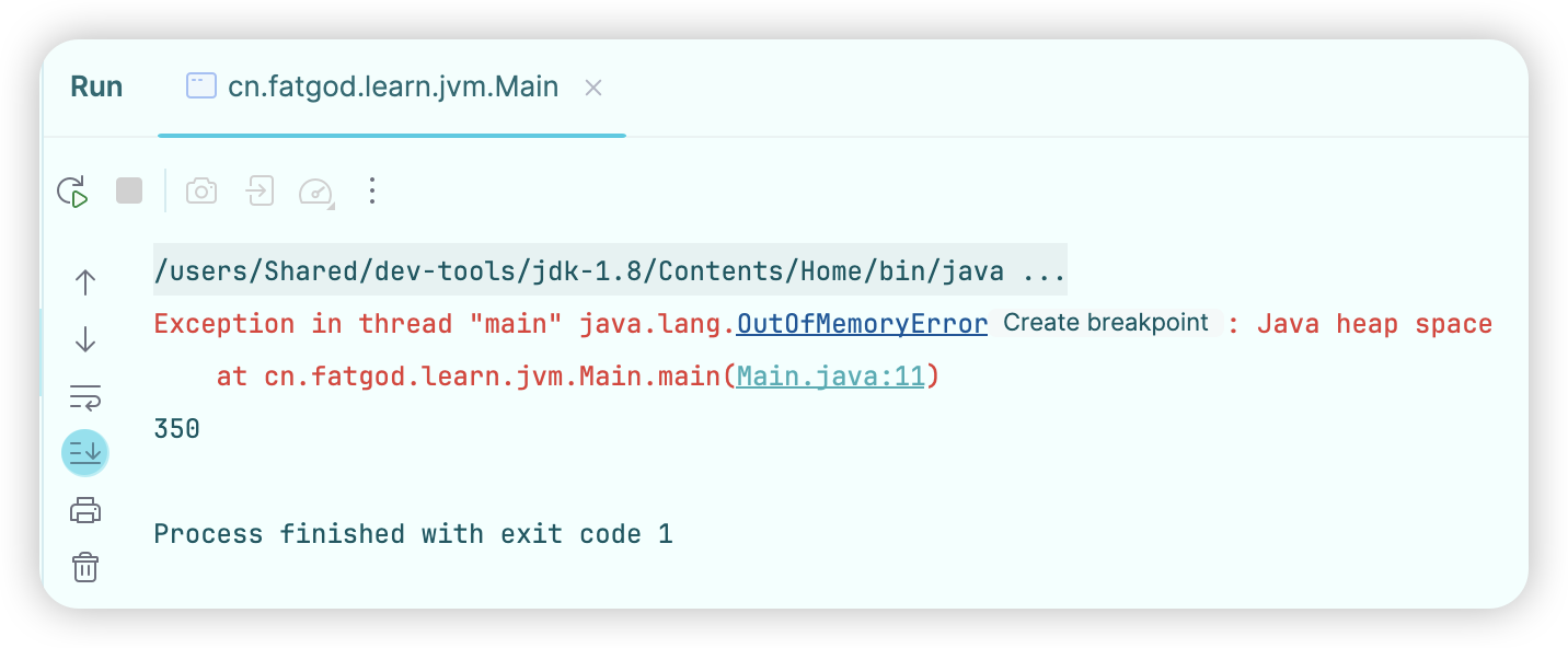那是不是当used = max = total时,就会发生堆内存溢出呢?答案是否定的,堆内存溢出的判断条件也比较复杂,这点会在章节垃圾回收中详细介绍。