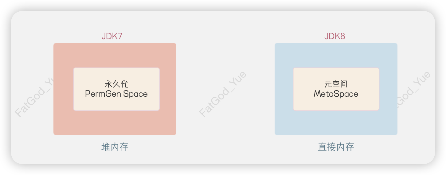 需要说明的是,《Java虚拟机规范》并没有对方法区在内存中的位置进行明确限制。在HotSpot虚拟机中,对方法区的实现主要分为两种,一种是在JDK1.7及之前版本中的永久代(PermGen Space),它位于堆内存中;另一种是在JDK1.8及之后版本中的元空间(MetaSpace),它位于操作系统管理的直接内存中。