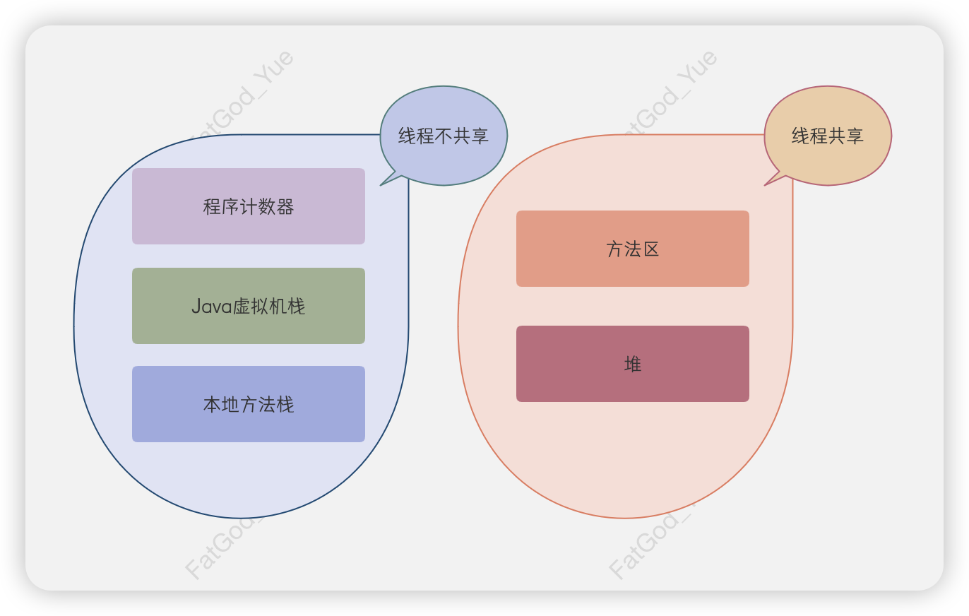线程不共享的区域与对应线程的生命周期紧密关联,这些区域会随着线程的创建而创建,也会随着线程的退出而销毁。但是,线程共享的区域会在JVM启动时创建,且只在JVM退出时被销毁。