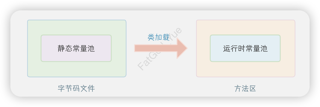 在类加载后,JVM会根据字节码文件中的静态常量池来创建一个运行时常量池(Run-Time Constant Pool),并将它存储在方法区中。此时,字面量直接以字节数据的形式存储在内存中,符号引用也会转换为直接引用。