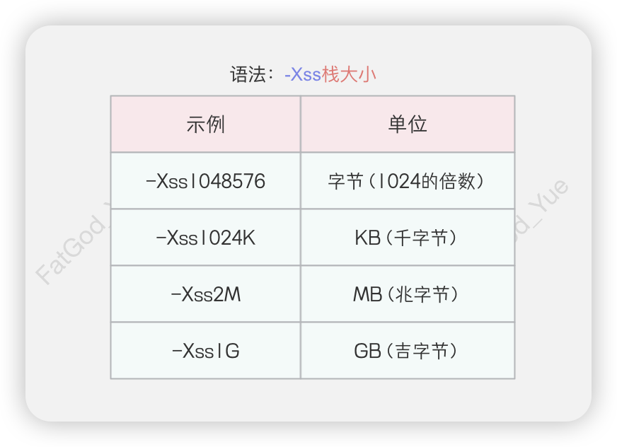 虚拟机栈的大小默认是由操作系统和计算机体系结构决定的,例如,在64位的Linux系统中创建的Java虚拟机栈的默认大小为1MB。然而,开发者仍可以通过虚拟机参数-Xss来手动指定栈的大小,语法如下。